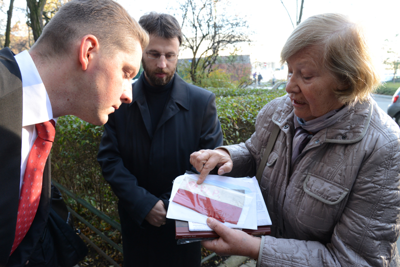 Składanie wiązanki przy ul. Dunin-Wąsowicza – rocznica 21.10.2013 (fot. Stanisław malik)