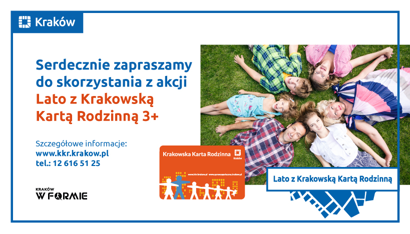 Serdecznie zapraszamy dzieci i młodzież legitymujących się ważną Krakowską Kartą Rodzinną do skorzystania, w wakacje, tj., od dnia 1 lipca do 31 sierpnia 2021 r., z atrakcji przygotowanych przez Gminę Miejską Kraków i Partnerów Programu KKR 3+.