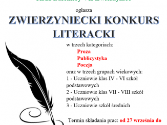 Rada Dzielnicy VII Zwierzyniec ogłasza ZWIERZYNIECKI KONKURS LITERACKI w trzech kategoriach: Proza Publicystyka Poezja oraz w trzech grupach wiekowych: 1 – Uczniowie