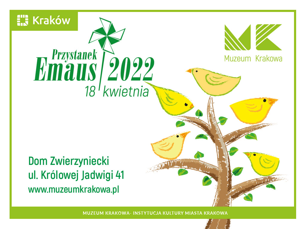 W godzinach od 9.00 do 17.00. zapraszamy do muzealnego ogrodu przy ul. Królowej Jadwigi 41, gdzie będzie można oglądać plenerową wystawę o krakowskich tradycjach wielkanocnych, a w godzinach od 10.00 do 15.00 spotkać się z artystami wykonującymi tradycyjne zabawki emausowe. Również od 10.00 do 14.00 zapraszamy dzieci do tworzenia własnych zabawek podczas przygotowanych specjalnie dla nich warsztatów (koszt uczestnictwa 15 zł). W naszej sali spotkań będzie można nie tylko podziwiać drzewka emausowe biorące udział w tegorocznym, ósmym już Konkursie na Najpiękniejsze Drzewko Emausowe, ale także tradycyjnie zagłosować na drzewko publiczności (od 20 kwietnia do 22 maja tegoroczne drzewka będą prezentowane na wystawie w Pałacu pod Krzysztofory). Zaś w samo południe nastąpi ogłoszenie wyników tegorocznego konkursu oraz uroczyste wręczenie nagród (wydarzenie będzie transmitowane poprzez profil Domu Zwierzynieckiego na Facebooku). A ponieważ Emaus to kolorowy jarmark, zapraszamy na nasz stragan muzealny pod klasztorem Norbertanek, gdzie będzie można nabyć pamiątki i wydawnictwa w specjalnej odpustowej cenie 😉