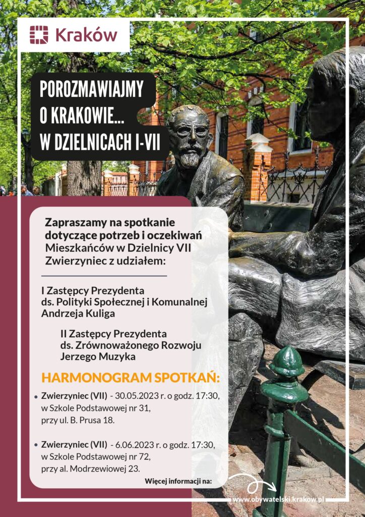 Urząd Miasta Krakowa zaprasza mieszkańców Dzielnicy VII Zwierzyniec do udziału w zaplanowanych w dniach: 30 maja br. o godzinie 17.30
