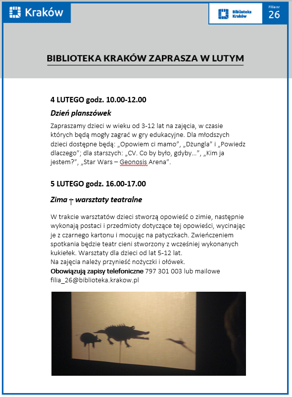 4 LUTEGO godz. 10.00-12.00 Dzień planszówek Zapraszamy dzieci w wieku od 3-12 lat na zajęcia, w czasie których będą mogły
