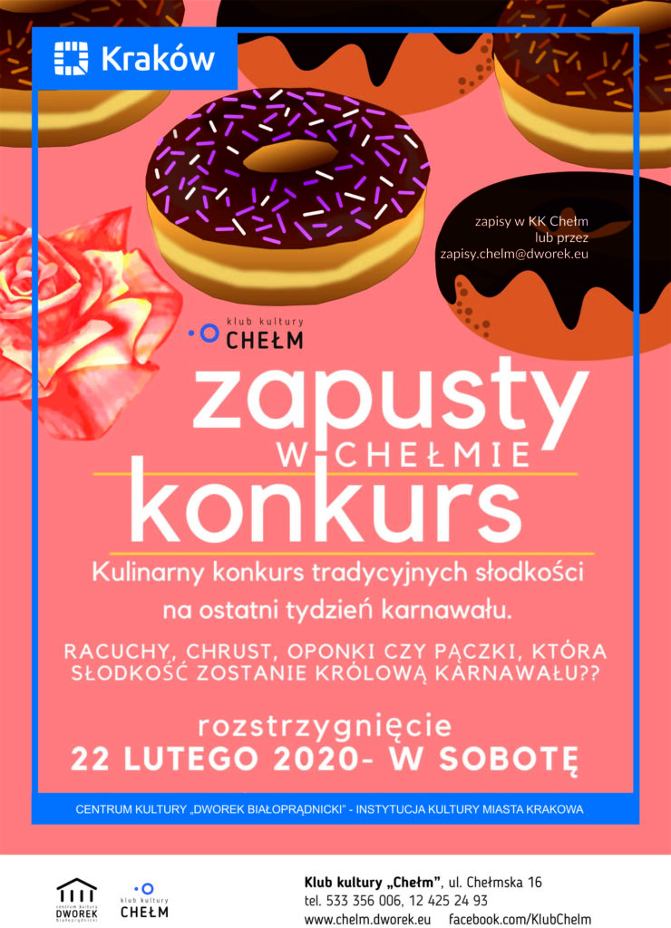 ZAPUSTY W CHEŁMIE- KONKURS przynieś!- spróbuj!-zagłosuj! Sobota 22 luty, godz 12:00 Kulinarny konkurs tradycyjnych słodkości na ostatni tydzień karnawału. Racuchy,