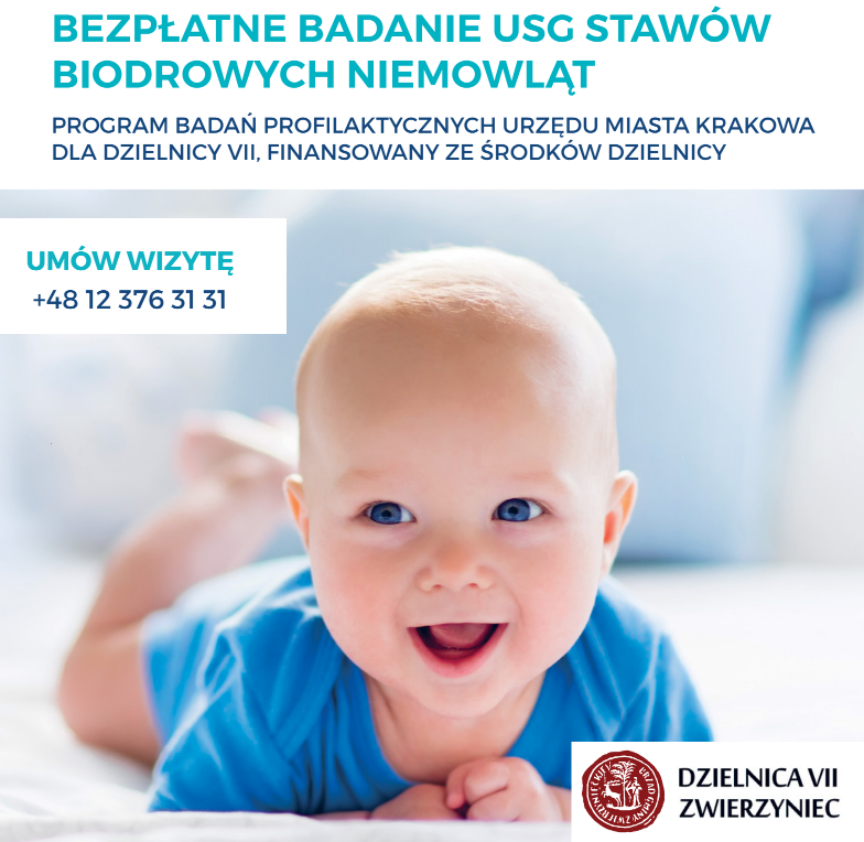 Zapraszamy na bezpłatne badania USG stawów biodrowych niemowląt, szczegóły na plakacie: