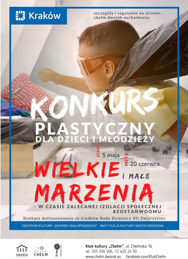 Centrum Kultury „Dworek Białoprądnicki” Klub Kultury ”Chełm” Zaprasza dzieci i młodzież do wzięcia udziału w Małopolskim Konkursie Plastycznym „WIELKIE i
