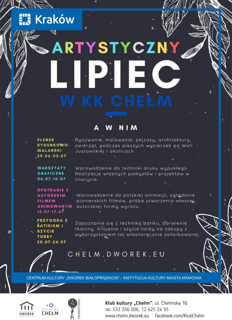 Lato w mieście nie musi być nudne! Zapraszamy do zapoznania się z ofertą tegorocznych Wakacji z Kulturą w Klubie Kultury