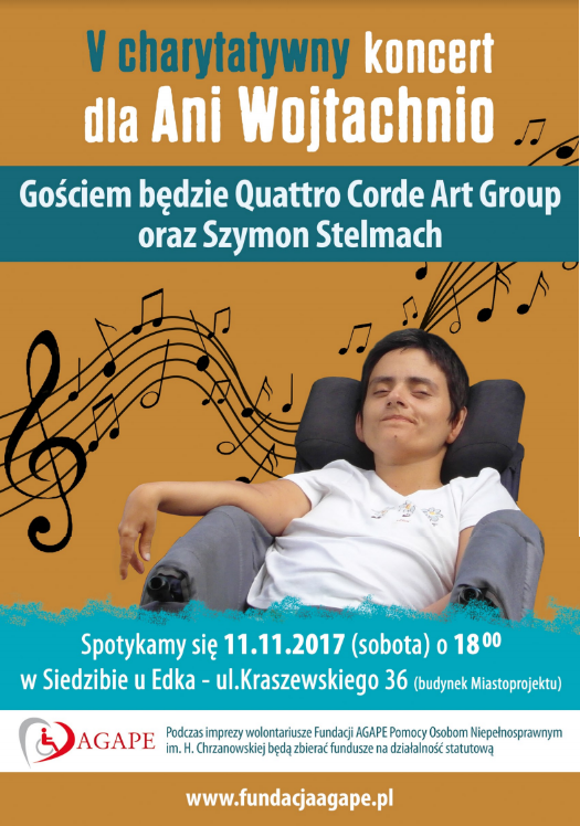 Zapraszamy na koncert charytatywny, który odbędzie się 11 listopada o godz.18:00 w Siedzibie u Edka – ul. Kraszewskiego 36 (budynek