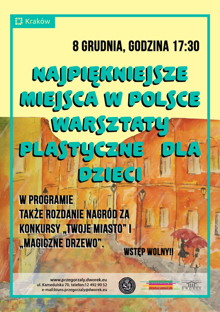 8 grudnia, godzina 17:30 – Klub Kultury Przegorzały zaprasza na warsztaty plastyczne „Najpiękniejsze miejsca w Polsce, które poprowadzi artysta-plastyk Ewa