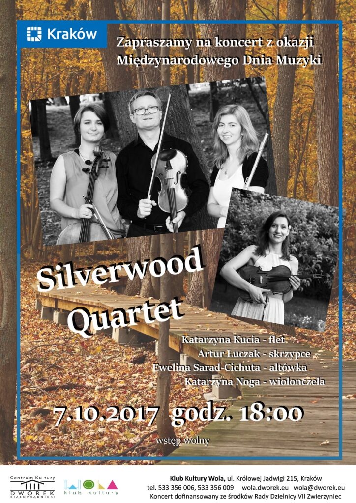 Koncert Silverwood Quartet w Klubie Kultury Wola Klub Kultury Wola (ul. Królowej Jadwigi 2015) zaprasza na koncert z okazji Międzynarodowego