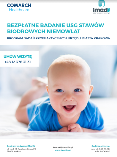 Urząd Miasta Krakowa zachęca do udziału w programie bezpłatnych profilaktycznych badań USG stawów biodrowych u niemowląt. Wizytę można umówić pod